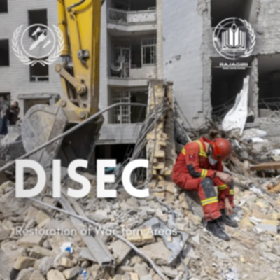 The Disarmament and International Security Committee (DISEC),is the First Committee of the United Nations General Assembly. This MUN addresses one of the most complex and urgent challenges concerning the international security landscape: the restoration of war-torn areas